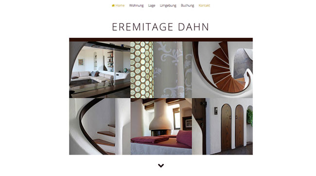 Die neue responsive Homepage von Eremitage Dahn ist online. Die außergewöhnliche Ferienwohnung liegt in Dahn in der Vorderpfalz und kann direkt mit Hilfe eines Buchungskalenders auf der Homepage gebucht werden.