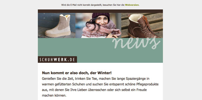 Neues Mailing «Zeit für warme Füße!» von schuhwerk.de – konsequent natürlich