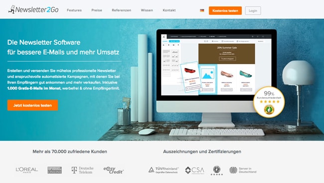 Newsletter2Go ist eine Newsletter Software, die es Unternehmen wie Online-Shops, KMU, Vereinen, Agenturen und öffentlichen Einrichtungen ermöglicht, auch ohne Programmierkenntnisse direkt im Browser Mailings zu erstellen und zu versenden. Mit Kunden aus über 50 Ländern ist Newsletter2Go einer der weltweit führenden Anbieter für Newsletter Software.