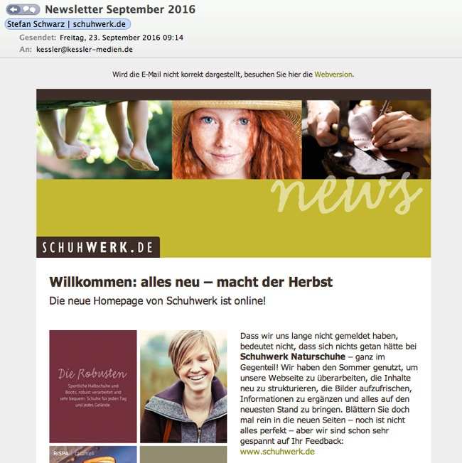 Mailing « Willkommen: alles neu – macht der Herbst » über den deutschen Mailingspezialisten Newsletter2Go.
