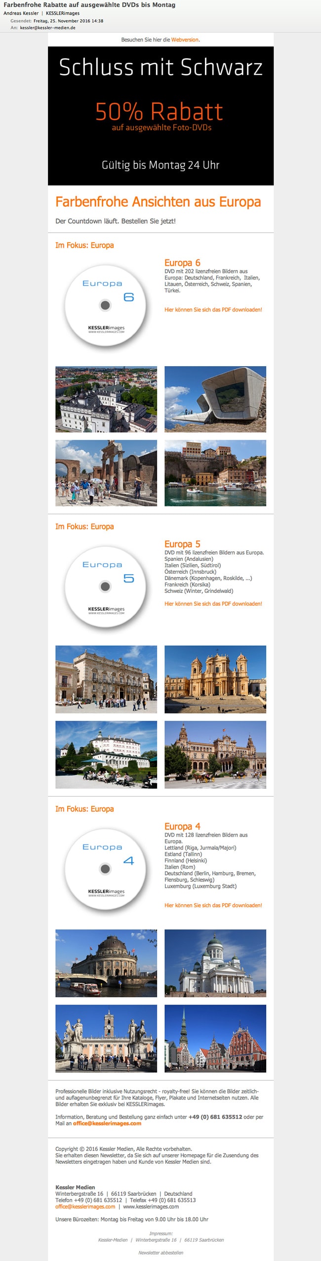 Mailing «Schluss mit Schwarz. Farbenfrohe Ansichten aus Europa» über den deutschen Mailingspezialisten Newsletter2Go.