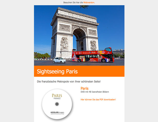 Mailing-Aktion Kesslerimages «Neue Bilder aus Paris» über den deutschen Mailingspezialisten Newsletter2Go.
