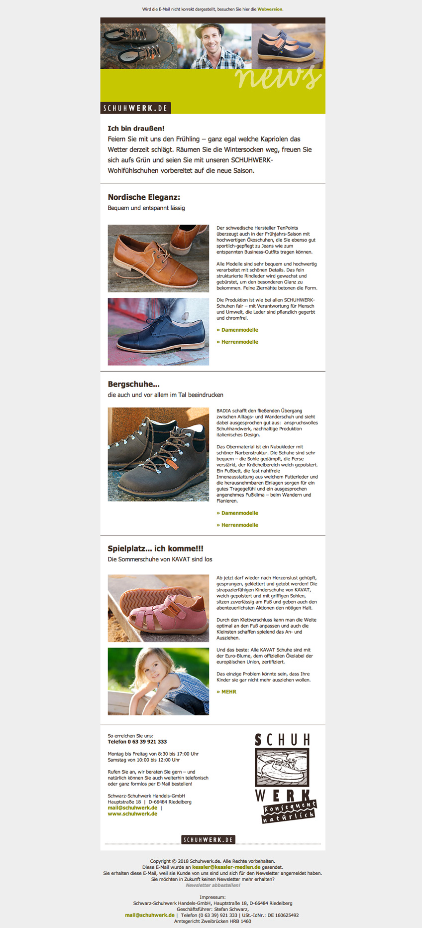 Neues Mailing « Ich bin draußen » von schuhwerk.de – konsequent natürlich