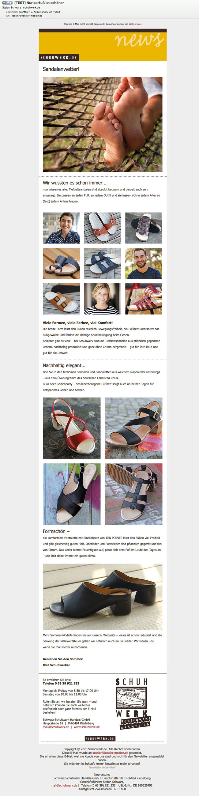 Neues Mailing « Nur barfuß ist schöner » von schuhwerk.de – konsequent natürlich