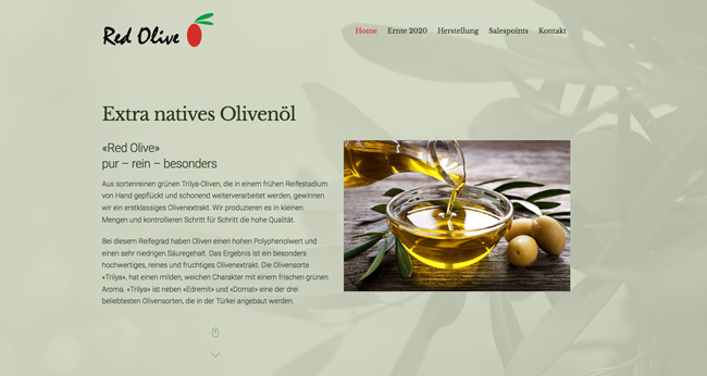 Der neue Internetauftritt von «Red Olive – Extra natives Olivenöl» aus Reutlingen ist online. Das Content-Management-System mit einfacher und intuitiver Bedienung durch den Benutzer ist WordPress. Das verwendete Theme «Ultra» ist von themify.